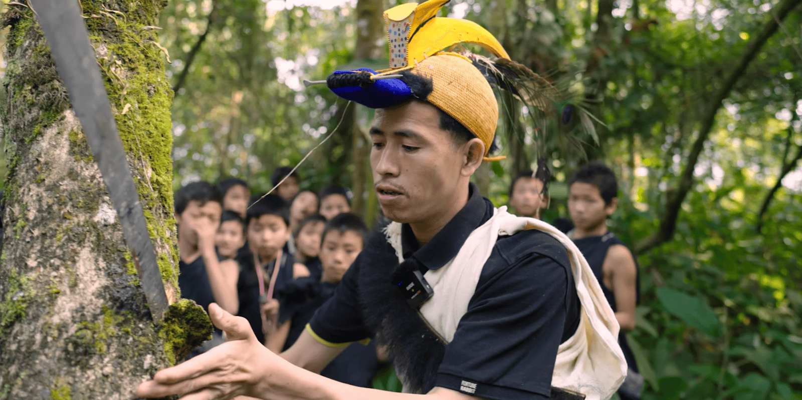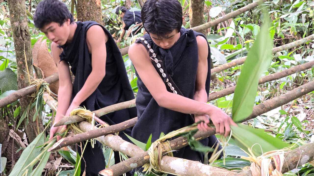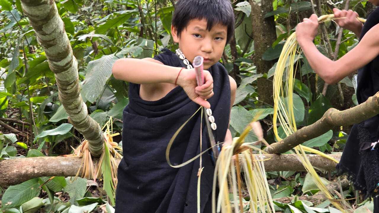 As evening approached, they were shown traditional methods of creating fire using stones and bamboo scraps. Later, the students gathered bamboo to prepare local drinking jars, which they filled with clean waterfall water from the forest. Rice was placed inside the bamboo and cooked over the fire, along with a jungle bird that had been hunted earlier in accordance with traditional practices that emphasise sustainability and restraint. Prayers were offered after the hunt, acknowledging respect for nature and balance in its use.